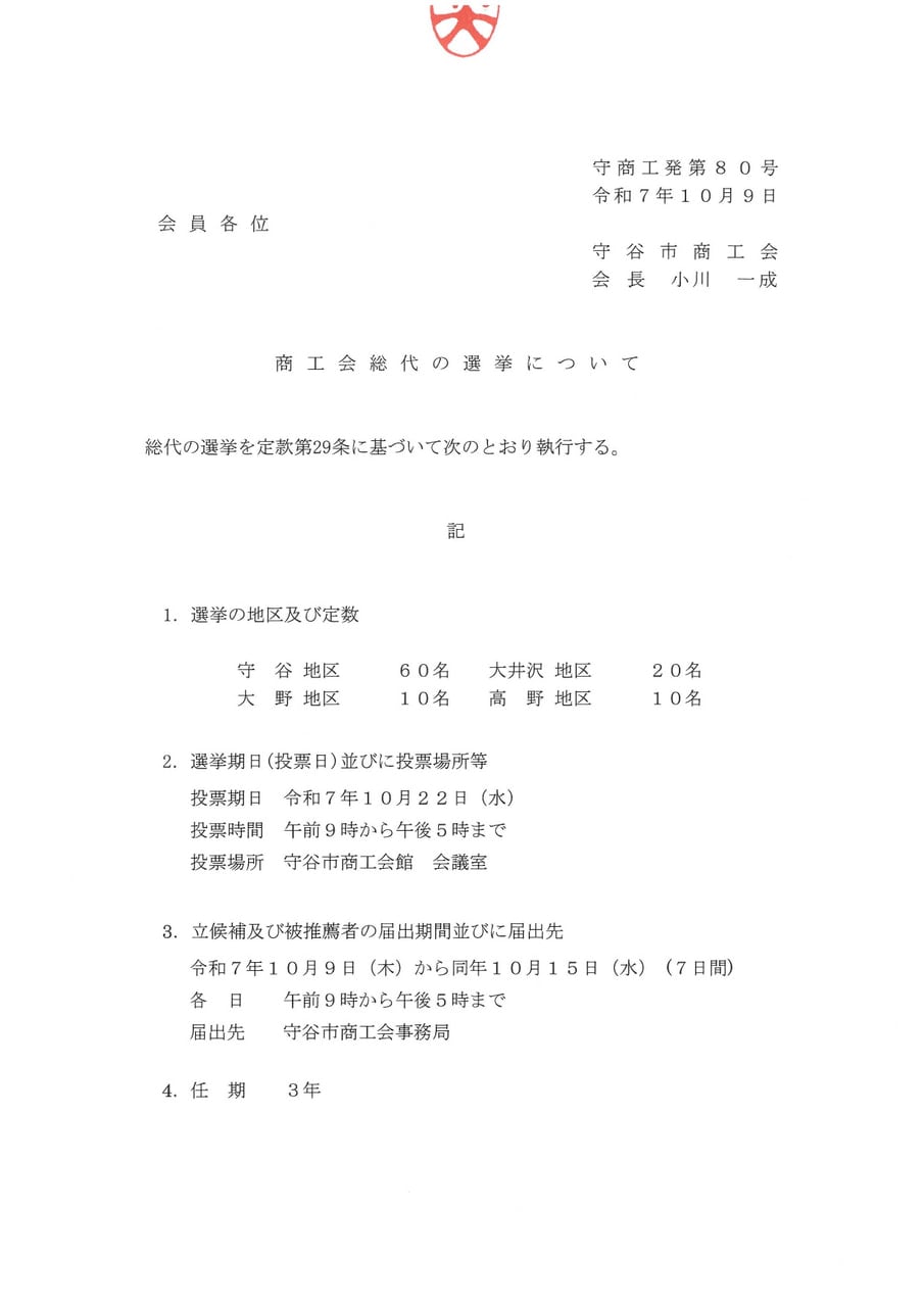 ▶守谷市商工会総代選挙立候補届